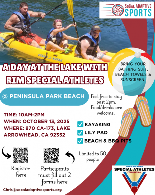 Day at the Lake with Rim Special Athletes SoCal Adaptive - Lake Arrowhead Adaptive Sports Event October 13, 2025 - 10:00am - 2:00pm