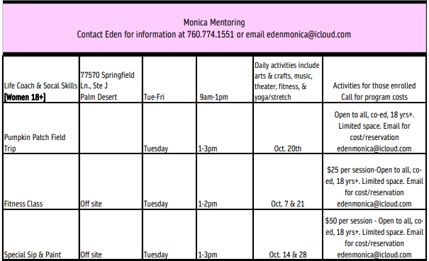 Fitness Class [18+] Monica Mentoring Adaptive Sports Event September 2, 2025 - 1:00pm - 2:00pmSeptember 16, 2025 - 1:00pm - 2:00pmSeptember 30, 2025 - 1:00pm - 2:00pmOctober 7, 2025 - 1:00pm - 2:00pmOctober 21, 2025 - 1:00pm - 2:00pm