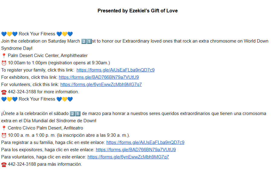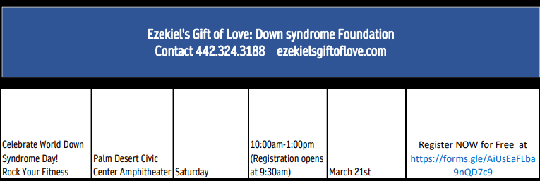 Rock Your Fitness Event Ezekiel's Gift of Love - Palm Desert Civic Center Park Amphitheatre Adaptive Sports Event March 21, 2026 - 10:00am - 1:00pm